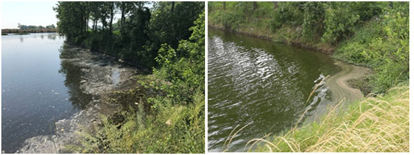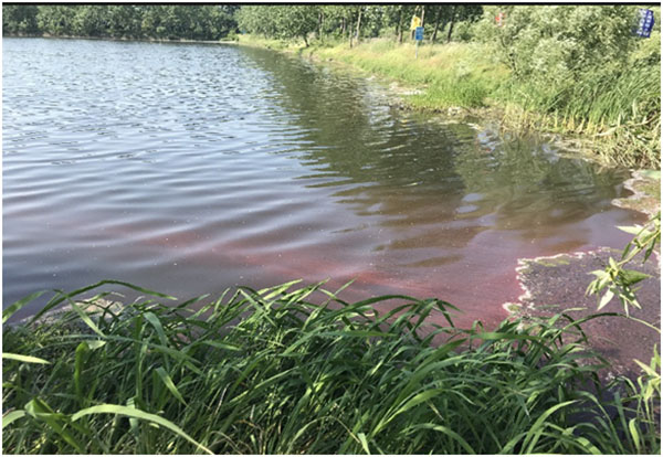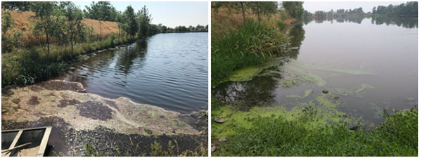 6月14日,治理一月后,水體藻體大量生長,水體刺鼻性氣味消除,水體黑臭得到改善,耐污能力較強的藍藻呈小規模暴發態勢。