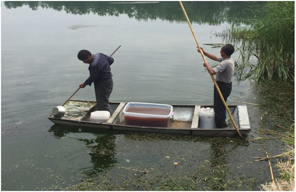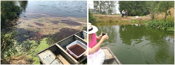 2017年5月11日南京蓋亞生物工程有限公司聯合成都大開應用技術研究所采用RhP體系技術,針對船塘水體黑臭開展應急治理,歷經近兩個月時間,船塘水質已發生明顯變化:水體黑臭得以消除,尤其因工業污染產生的刺鼻性氣味已基本消除,水體透明度提升至40cm,水體富營養化程度大幅降低,水生態環境初步建立,食物鏈得以完善,水體中藻類種群發生改善,大量有益藻類和浮游動物開始生長,水色已轉變為淡綠色。