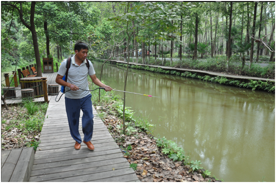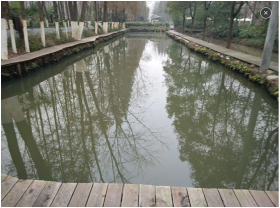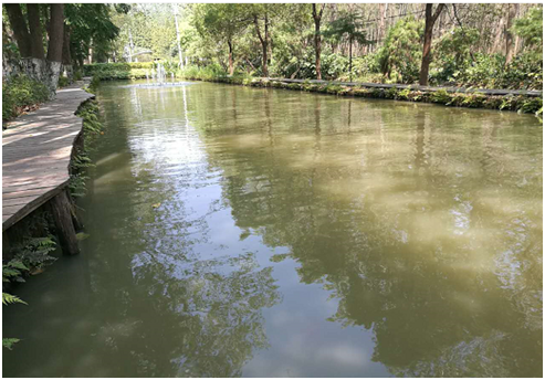1號(hào)水域:位于焦姥路北,翠隱洞天東,長(zhǎng)130米,均寬8米水域,面積1.62畝,1號(hào)水域相對(duì)獨(dú)立,補(bǔ)水由噴泉引地下水補(bǔ)充,水深1.5米,水體發(fā)黑,富營(yíng)養(yǎng)化嚴(yán)重,透明度低;