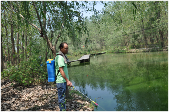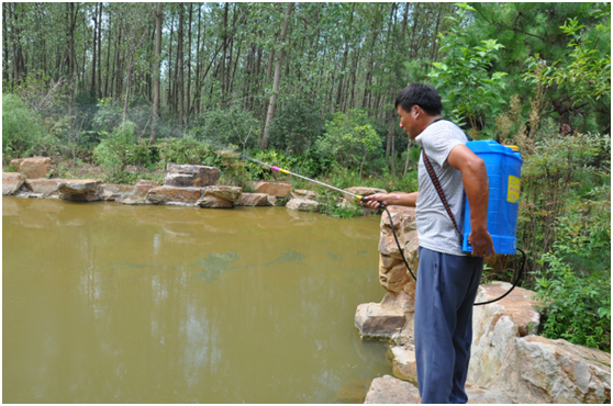 1.全水域潑灑:每7天進(jìn)行一次,每次用量1號(hào)水域6ppm,2號(hào)水域10ppm,3號(hào)水域7ppm,使用噴霧器人工沿岸邊均勻潑灑。