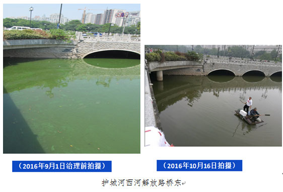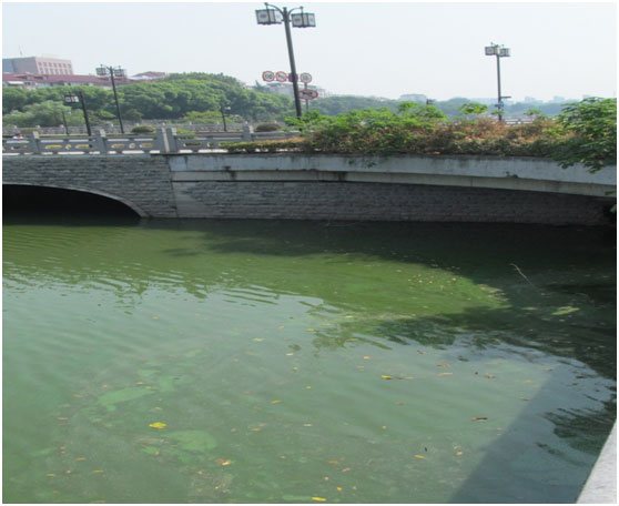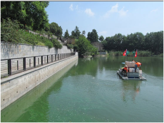 護城河東河藍藻持續生長爆發,大量藍藻聚積在西河入口,隨水而下流入西河,加劇西河藍藻水華形成,對西河水域造成藍藻反復富集現象。